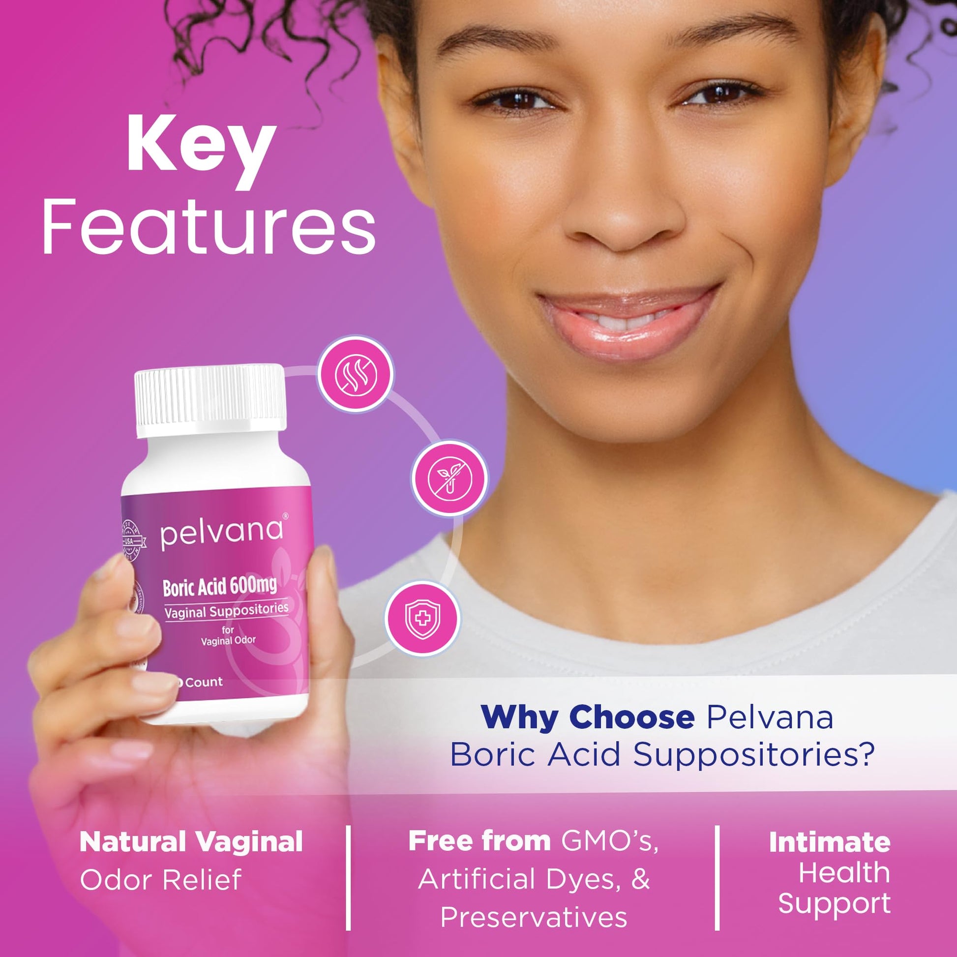 Care for your intimate health with Pelvana’s Boric Acid Suppositories for Women – 60-Count Pack. This formulation supports a balanced vaginal environment and offers women a discreet, convenient way to manage odor, discomfort or recurring imbalances. With a generous 60-count supply, you’re prepared for regular use or periodic wellness refresh.